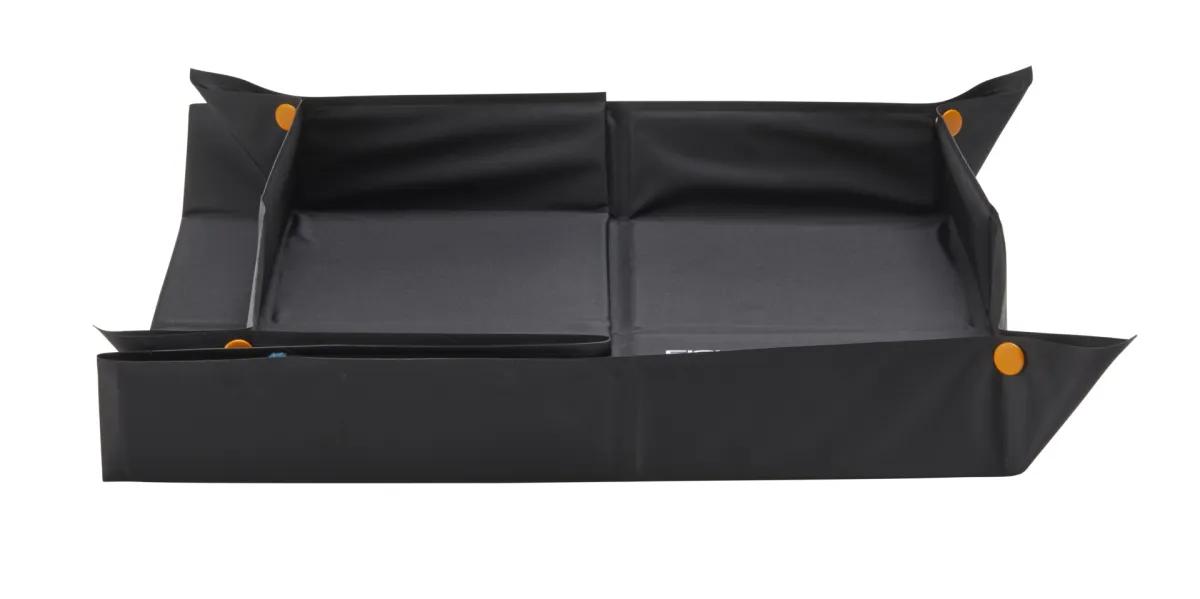 Podložka Fiskars na sadenie a presádzanie chráni pracovnú plochu a uľahčuje a urýchľuje upratovanie. Podložka vytvorí veľkú pracovnú plochu až do rozmerov 82,5 cm x 44,5 cm. Pomocou zacvakávacích rohov sa vytvoria hlboké pevné boky, zabraňujúce rozsypaniu zeminy a ďalších sypkých materiálov. Vonkajšia vrstva je vyrobená z odolného a vodeodolného nylonu, ktorý sa ľahko očistí utretím. Pevné panely sú odolné proti prepichnutiu a majú dlhú životnosť. Vnútorné panely je možné zložiť niekoľkými spôsobmi, a to umožňuje úhľadne nasypať voľný materiál späť do svojho obalu a minimalizovať tak jeho rozsypanie mimo neho.