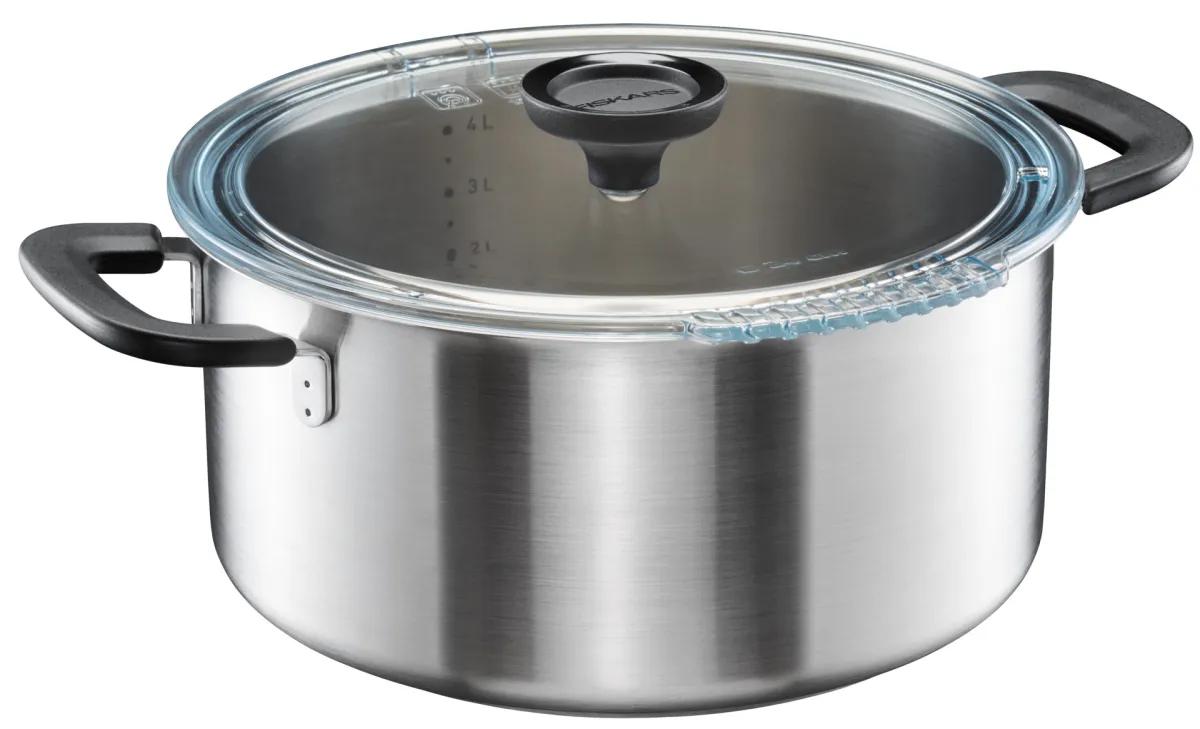 Kerti szerszámok » FISKARS konyhai eszközök » Fiskars Fazék fedővel, 5,0 L / 24 cm, rozsdamentes acél 1072317
