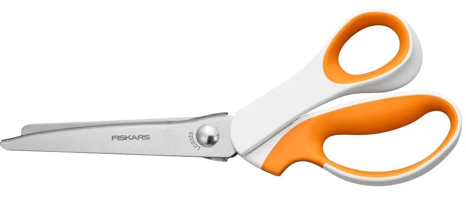 - A Fiskars Classic szegélyvágó olló szövetek és egyéb anyagok, például filc, papír és kárpit szegélyeinek befejezésére alkalmas.